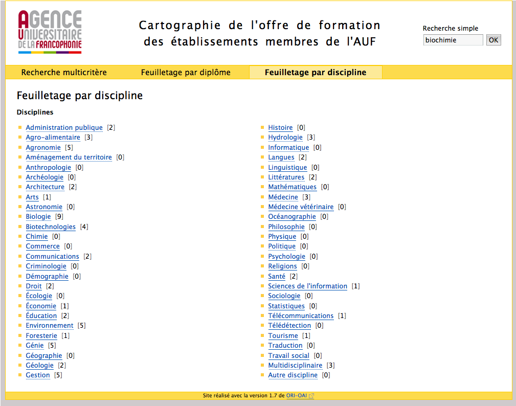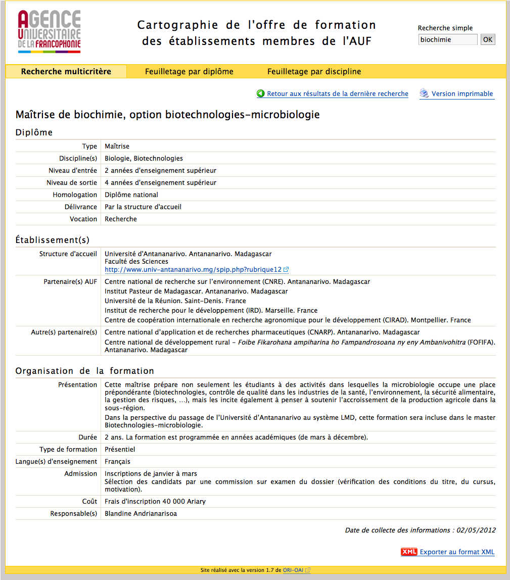 Appui à la création d’un portail internet référençant toutes les formations de niveau master ou supérieur dispensées par les établissements membres de l’Agence universitaire de la Francophonie (AUF)